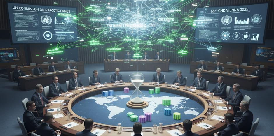 At the centre of this system is the UN Commission on Narcotic Drugs (CND), a rotating body of 53 member states that meets annually in Vienna. Its decisions ripple far beyond its chamber: into national laws, health systems, human rights protections, and security strategies. For decades, the CND operated under consensus, effectively giving prohibitionist states such as the United States a veto. Harm reduction and human rights language rarely made it into resolutions.